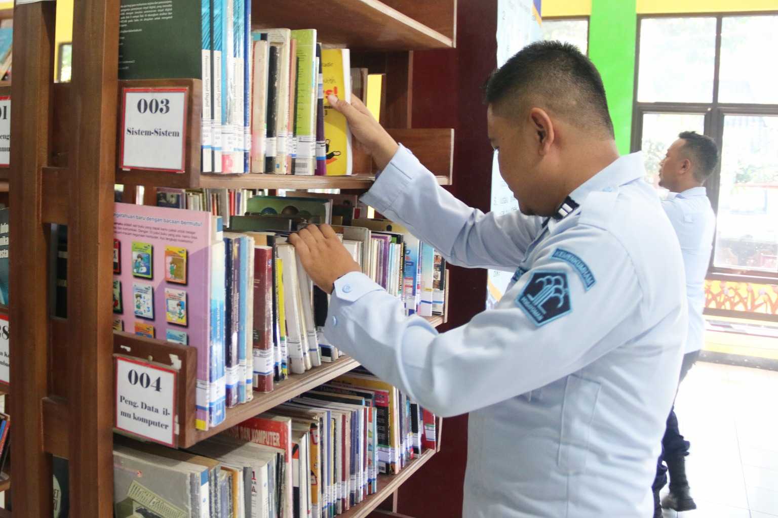 “Buku adalah gudang ilmu yang harus dimanfaatkan oleh warga binaan, dengan membaca buku, masa saat menjalani hukum dapat dimanfaatkan dengan sebaik-baiknya untuk menambah wawasan.”Ujar Adi Staff Pembinaan.