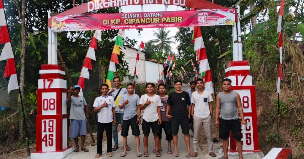 Teropongistana.com Lebak – Menyambut Hari Ulang Tahun ke-80 Republik Indonesia, Masyarakat Kampung Cipancur Pasir, Desa pasirtanjung, Kecamatan Rangkasbitung, Kabupaten Lebak, Menunjukkan semangat nasionalisme dan gotong royong yang tinggi dengan membangun sebuah gapura kemerdekaan dan memasang lebih dari 200 umbul-umbul secara swadaya.