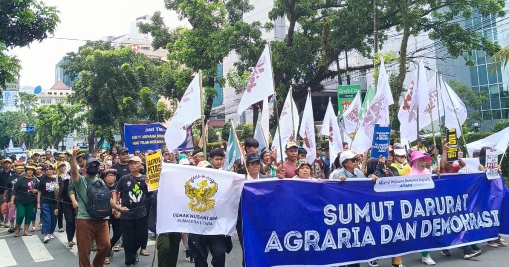 Dalam orasinya, Ketua Serikat Petani Sejahtera Indonesia (SEPASI), Tio Merli Sitinjak, menyampaikan tuntutan agar Gubernur Sumatra Utara, Bobby Nasution, menepati janji politiknya untuk menyelesaikan konflik agraria di wilayah Sumut.
