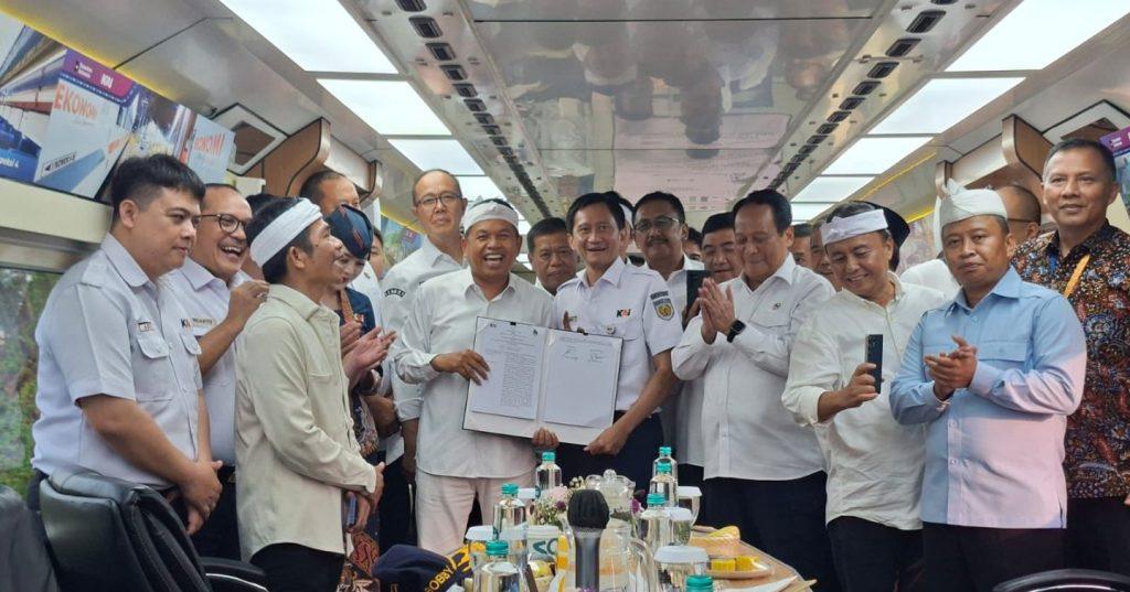 Di dalam kereta, dilakukan penandatanganan kerja sama antara Pemerintah Provinsi Jawa Barat dan PT Kereta Api Indonesia (KAI).