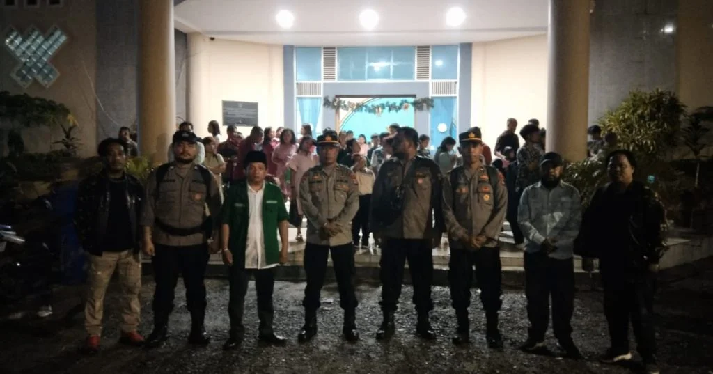 Teropongistana.com Sorong – Wakil Ketua GP Ansor Papua Barat, Jumain Acang S.Sos bersama Barisan Ansor Serbaguna (Banser) dan aparat kepolisian melaksanakan pengamanan ibadah malam Natal pada Selasa 24 Desember 2025. Pengamanan dilakukan di 22 titik gereja yang tersebar di Kabupaten Sorong dan Kota Sorong, Provinsi Papua Barat Daya.