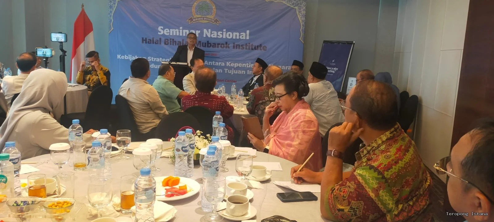 Teropongistana.com Jakarta – Mubarok Institute kembali menegaskan posisinya sebagai mitra strategis pemerintah dalam mengawal arah pembangunan nasional. Melalui gelaran Halal bi Halal yang dirangkaikan dengan Seminar Nasional bertajuk “Kebijakan Strategis Nasional Antara Kepentingan Negara, Perlindungan Hak Rakyat dan Tujuan Investasi”, lembaga ini membedah berbagai tantangan bangsa. Kegiatan tersebut digelar di Hotel JS Luwansa dan Convention Center, Jakarta Selatan, Selasa (14/4/2026).