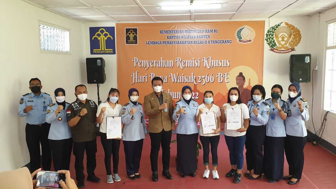Kegiatan Penyerahan Remisi Khusus Hari Raya Waisak Tahun 2022 sendiri dilakukan terpusat di Lapas Kelas I Tangerang, ditandai dengan penyerahan SK Remisi Hari Raya Waisak oleh Kepala Divisi Pemasyarakatan Kantor Wilayah Kementerian Hukum dan HAM Banten, Masjuno kepada 51 (lima puluh satu) Narapidana beragama Budha bertempat di Aula Terbuka Lapas Kelas I Tangerang.