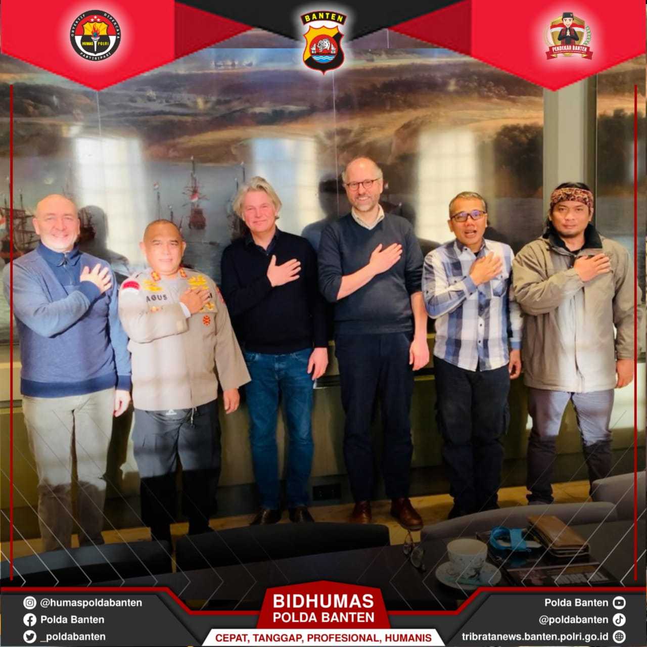 Dalam kesempatan ini, tim yang dipimpin Kabid Humas Polda Banten Kombes Shinto Silitonga berdiskusi dengan Direktur Museum Nasional Maritim Michael Huijser. Mereka menyampaikan tujuan untuk melihat koleksi dan histori benda berupa golok, bendera bergambar golok silang yang ada di museum tersebut.
