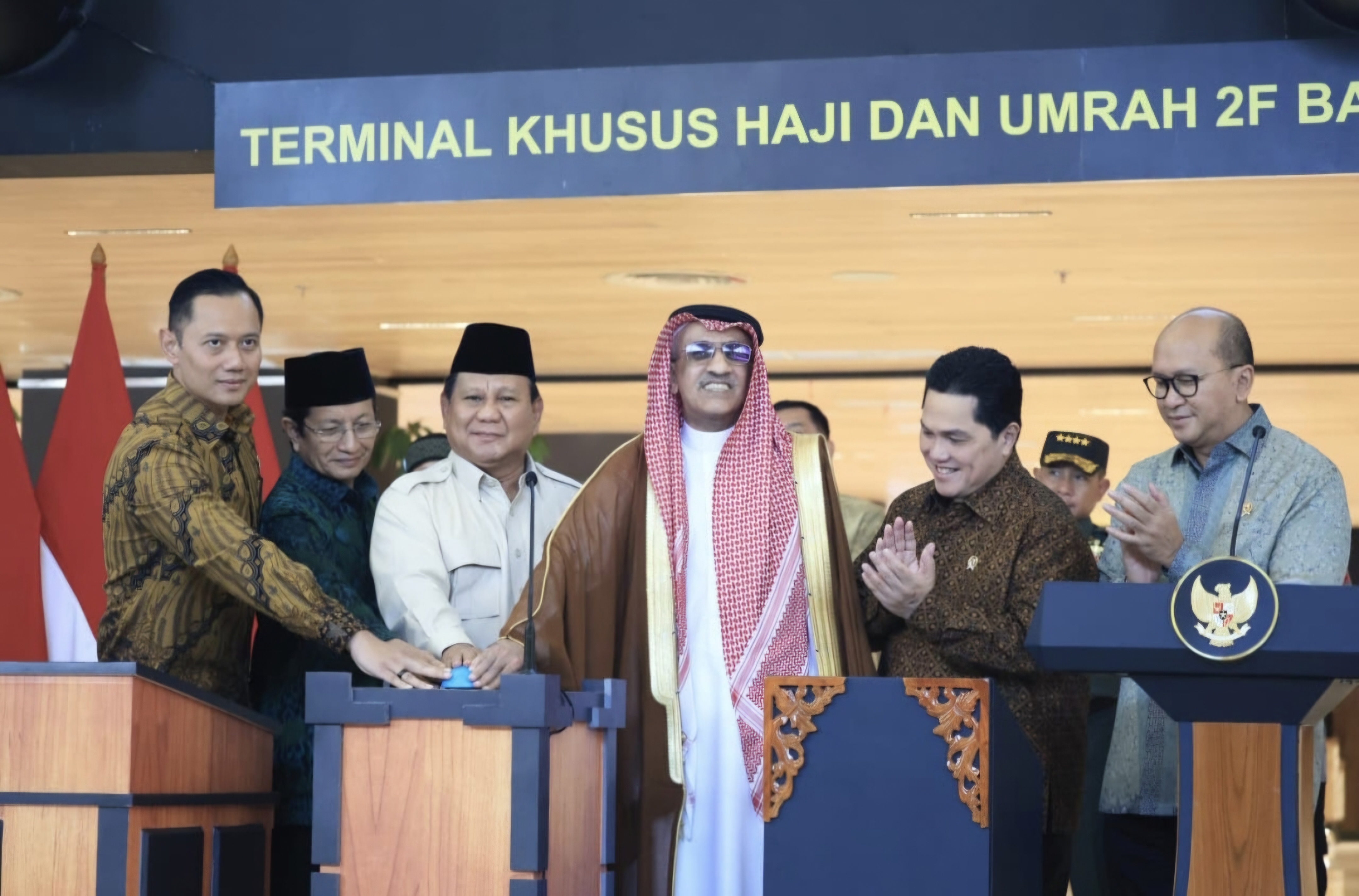 Teropongistana.com Tangerang – Presiden Republik Indonesia Prabowo Subianto meresmikan Terminal 2F Bandara Soekarno-Hatta, Tangerang, Banten sebagai Terminal Khusus Haji dan Umroh, Minggu (4/5). Presiden mengapresiasi upaya semua pihak yang telah mempersiapkan dan mewujudkan revitalisasi terminal 2F sebagai terminal Haji dan Umroh.